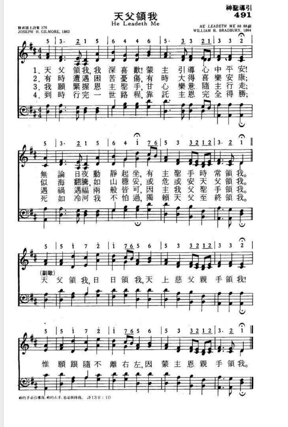 天父领我我深喜欢!蒙主引导心中平安!