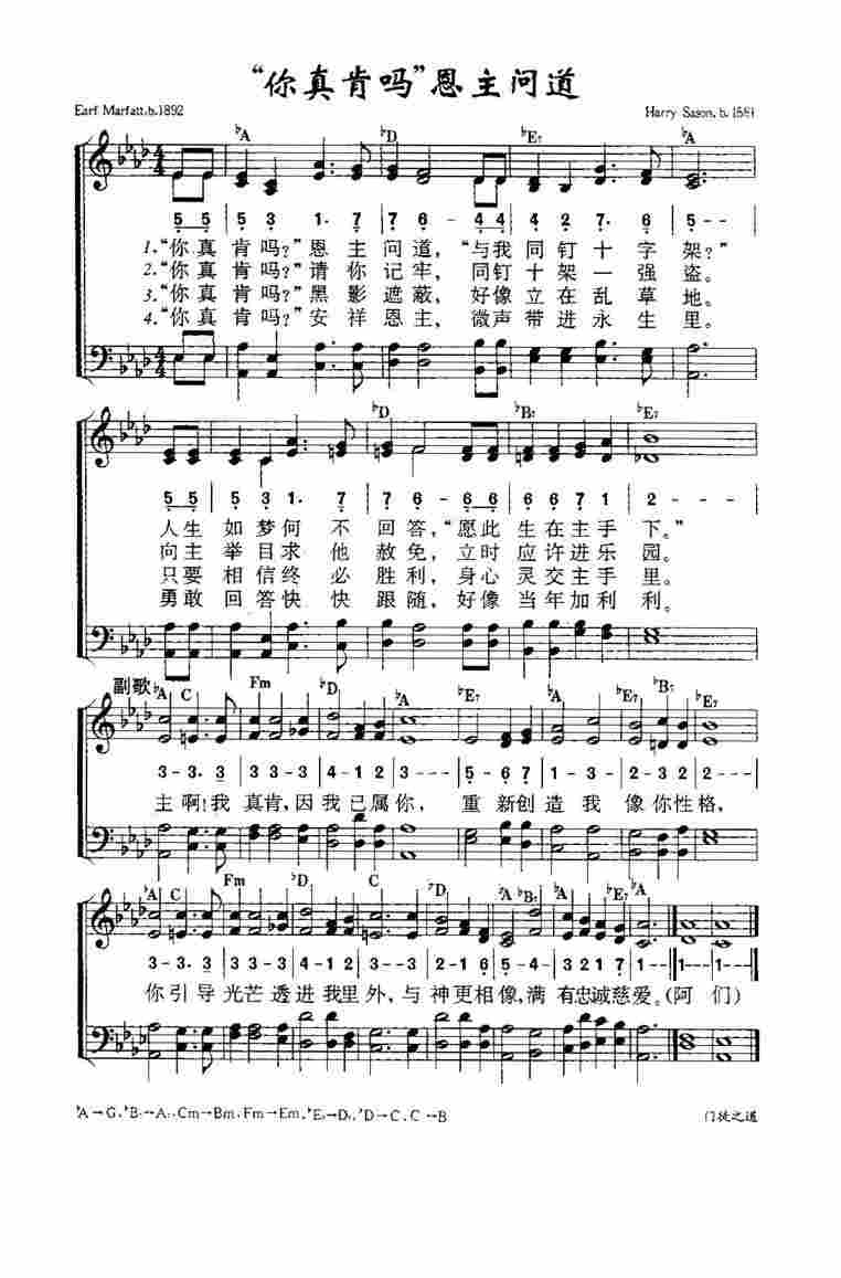本诗作者 Earl Marlatt 是一位宗教哲学之教授,先后任职于波士顿大学及南方卫理公会大学。这首"你真肯吗 恩主问道"的诗歌,是作者在波士顿大学任教的时候,为宗教教育学院的一个献身崇拜之用而写的,时为1925年。