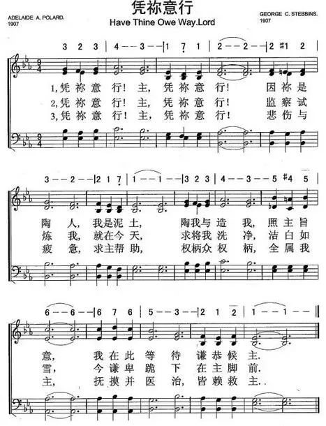 1902年包爱德拟去非洲传道,但募款无着,十分沮丧与灰心,灵性陷入低潮。一晚她参加一祈祷会,听到一位年长的姊妹祷告说:“主阿!不论你如何安排我的一切,但求你的旨意在我身上成全。”她听了大受感动,回家后,依据以赛亚书64:8耶和华啊,我们是泥,你是窑匠,我们都是你手的工作。写下了这首诗。