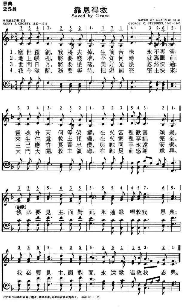 我必要见主,面对面,永远歌唱救我恩典。