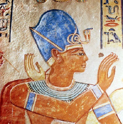 上图:古埃及第二十王朝法老拉美西斯三世(Ramesses III,主前1186–1155年在位)。他的王冠是高贵的蓝色。