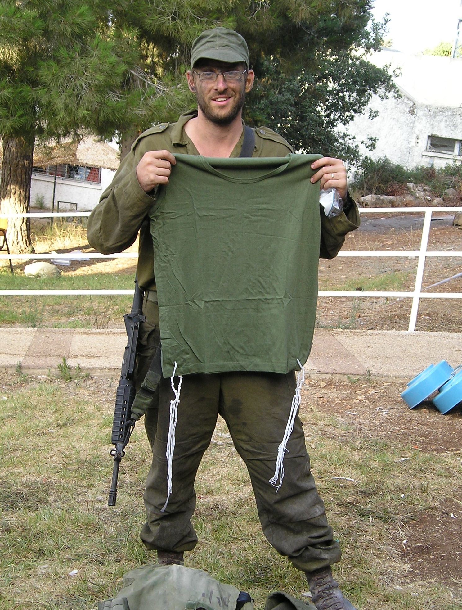 上图:以色列士兵的橄榄绿祷告衬衣和䍁子。