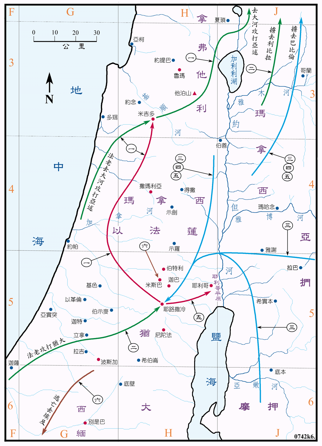 - 「利比拉」(6节)位于大马士革和迦基米施中间,是亚兰境内奥朗底河(Orentes River)上的要冲,也是从埃及通往美索不达米亚的大路岔口。在迦基米施战役之前,埃及法老尼哥二世的指挥部设在这里;迦基米施战役之后,巴比伦尼布甲尼撒也把这里当作大本营。埃及法老尼哥曾在这里锁禁约哈斯王(王下二十三33)。