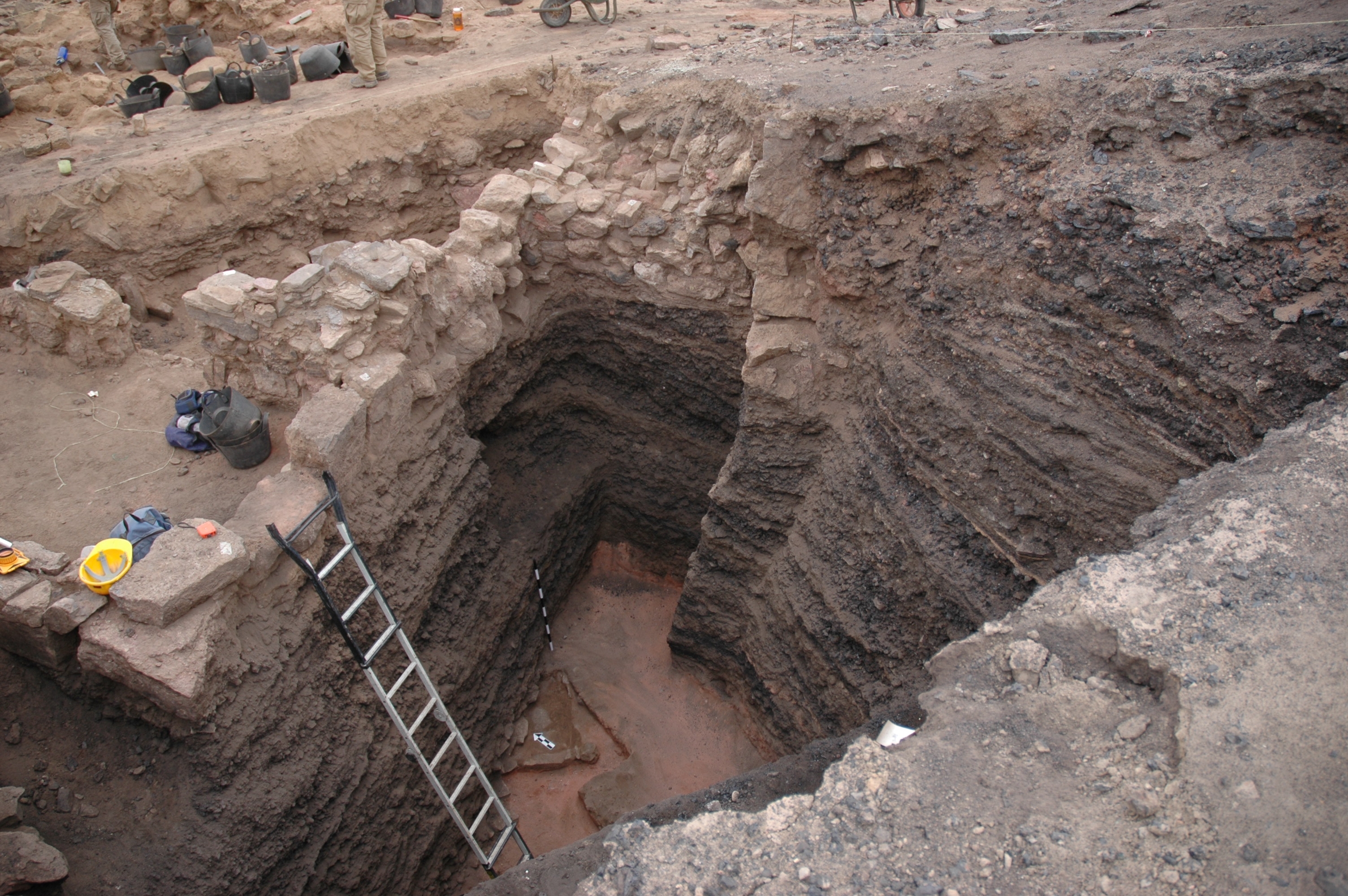 上图:2006年,加州大学圣地亚哥分校的Thomas Levy所领导的一个国际考古学家团队在约旦的Khirbat en-Nahas挖掘出来的工业铜渣土墩。它上面的建筑物和层数可以追溯到主前9世纪中期,而建筑物下埋放的超过20英尺的矿渣是主前10世纪的。对这里发现的动物粪便放射性碳测定的结果,证明这里在主前10世纪是一个大型铜生产基地,与大卫和所罗门的统治时期一致。Khirbat en-Nahas位于死海以南的荒凉干旱地区的低地,这里过去属于以东。