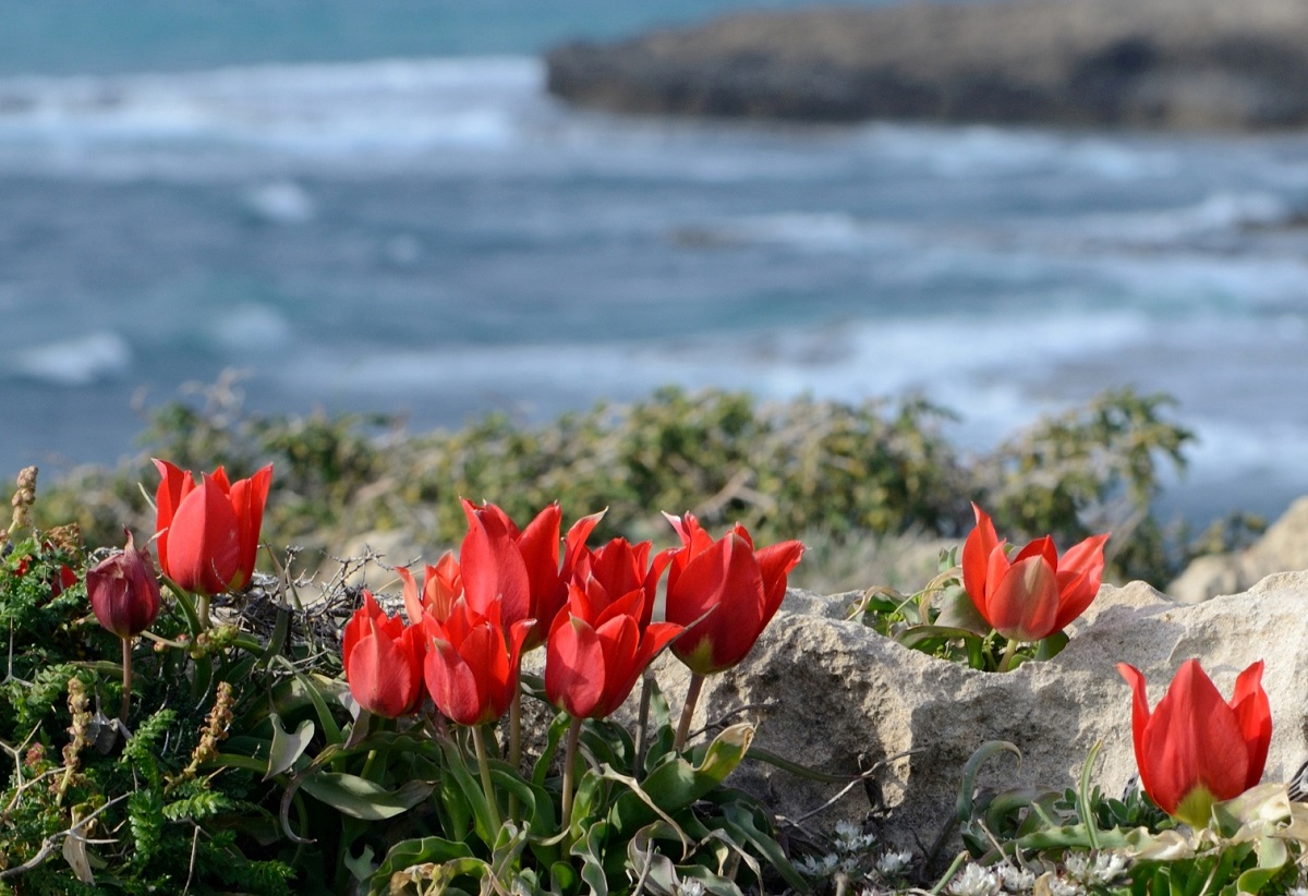 上图:以色列Dor-Habonim海滩的沙仑郁金香(Sharon tulip)。沙仑郁金香是一种过去遍布以色列的野花(Tulipa agenensis subspecies sharonensis),也可能就是「沙仑的玫瑰花」(歌二1)。