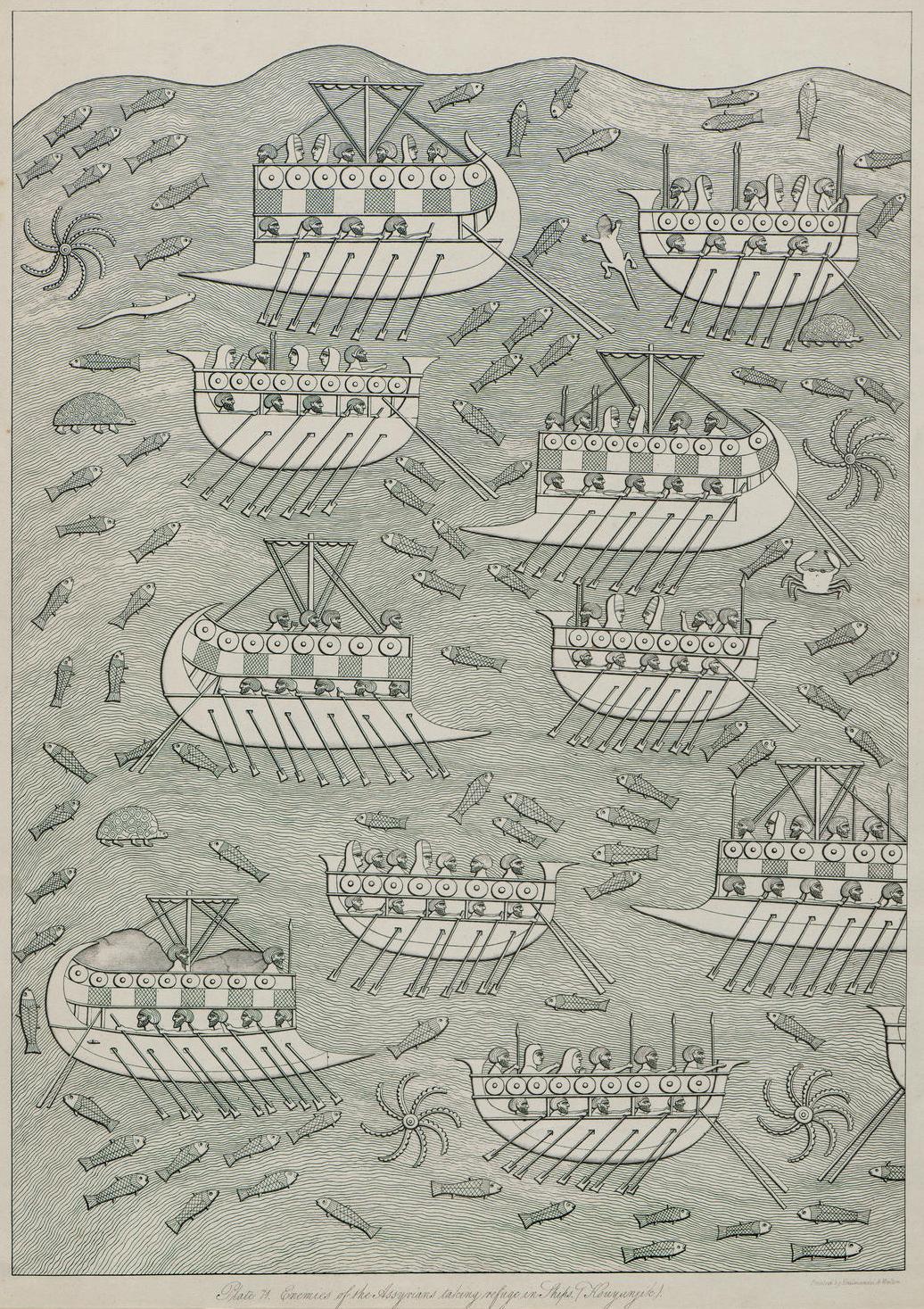 上图:主前480年,波斯王薛西斯一世第二次入侵希腊,腓尼基人为波斯军队建造渡海浮桥。主前539年波斯王古列征服巴比伦以后,腓尼基人务实地向波斯臣服,被划分为四个藩属国:西顿、推罗、阿瓦德(Arwad)和比布鲁斯(Byblos),当地的腓尼基王被允许自治、世袭和铸币。而腓尼基人也不负所望地为波斯帝国作出了重要贡献,在希波战争期间为波斯海军提供了大部分船只和水手,并且修建了薛西斯运河(Xerxes Canal)和跨海浮桥,帮助波斯陆军跨越海峡进入希腊大陆。
