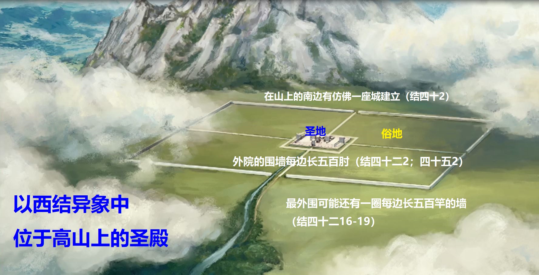 - 国度里的「圣所之地」(四十五2)是一个完美对称的正方形,就像一个大型的至圣所。而三道外墙可以有效地「分别圣地与俗地」(20节),完美地体现了圣殿的法则:「四围的全界要称为至圣」。今天,教会和信徒都生活在世界里,但我们的心中也当四面筑起围墙,「因为神的殿是圣的,这殿就是你们」(林前三17)。