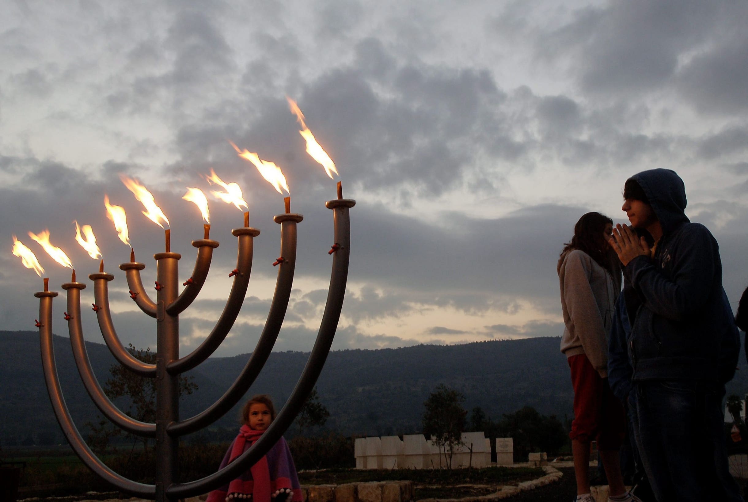 上图:光明节灯台(Hanukkah menorah)。主前168年,安提阿四世强制推行希腊化,在圣殿里竖起宙斯祭坛,用猪献祭,并强迫犹太人吃猪肉,导致了马加比起义。犹大马加比收复耶路撒冷以后,下令洁净圣殿,庆祝八天「修殿节」。当时人们在圣殿里只找到一罐有大祭司封印的用于点燃金灯台的灯油,无论是制作还是去外地取来这种专门洁净过的灯油,都需要八天时间。但这罐只能燃用一天的灯油,竟然一直燃烧了八天。为纪念此事,修殿节最主要的仪式是点燃九枝灯台,中间的灯盏用来点燃其它八支灯盏,每天多点一枝,一直到第八天,所以「修殿节」也被称为「光明节」。