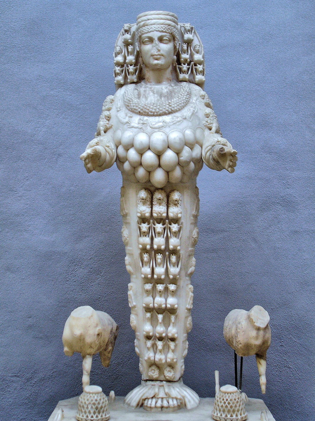 - 「亚底米 Artemis」(24节)是希腊神话中的狩猎与生育女神,又被译为「阿耳忒弥斯」,对应于罗马神话中的「狄阿娜 Diana」,是古代地中海世界最广泛、级别最高的偶像崇拜(保萨尼亚斯《希腊志 Pausanias’ Description of Greece 》4.31.8)。罗马帝国境内有33座亚底米神庙(斯特拉波《地理学 ?Strabo’s Geography 》4.1.5),其中最著名的就是以弗所的「大女神亚底米的庙」(27节),被列为古代世界七大奇迹之一。这个奇迹在主前356年被一个渴望出名的年轻人(赫罗斯特拉特 Herostratus)焚毁了,但重建之后规模却更大,长115米、宽46米,有126根高13米高的大理石柱,被以弗所人引以为荣。