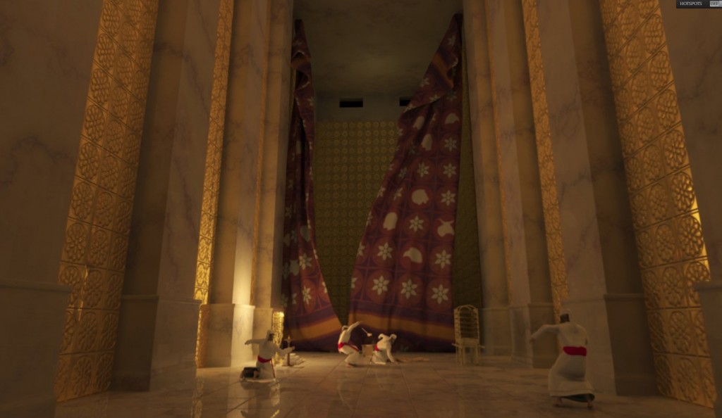 上图:当主耶稣在十字架上断气的时候,「忽然,殿里的幔子从上到下裂为两半,地也震动,磐石也崩裂」(太二十七51),代表基督的身体为我们裂开,从此为我们「开了一条又新又活的路,从幔子经过,这幔子就是祂的身体」(来十20),使我们可以借着祂进入至圣所亲近神。