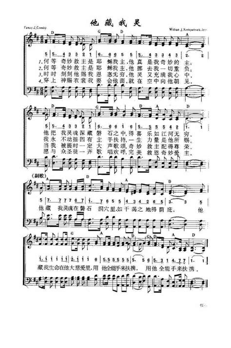 词:Fanny J.CROSBY 曲:William J.KIRKPATRICK 歌词: 何等奇妙救主是耶稣我主,他真是我奇妙的主; 他把我灵魂深藏磐石之中,得喜乐如江河无穷。 何等奇妙救主是耶稣我主,他挪去我一切重负; 我永不动摇,因有主手扶持,一生力量是他所赐。 时时刻刻他赐我恩惠无穷,他灵又充满我心中, 当我被提时一定大声歌颂,奇妙救主配得尊荣。 穿上神赐衣裳我要会他面,就在空中向他朝见, 愿与众圣徒一齐歌唱欢呼,完美救恩奇妙爱主。 副歌: 他藏我灵魂,在磐石洞穴里,如干渴之地得荫庇, 他藏我生命,在他大慈爱里, 用他全能手来扶携,用他全能手来扶携。 诗歌背景资料: 《他藏我灵》是著名的盲眼女诗人芬妮·克罗斯比的作品。芬妮·克罗斯比(Fanny J. Crosby 1823-1915),美国人,在出生六周时,因感冒被误诊而失明。她八岁开始写诗,十五岁时就读于纽约盲童学校,在校中,她的诗曾多次获奖。毕业后任教该校达十一 年之久。1858年她嫁给盲乐师梵阿斯丁(Alexander Van Alstyne),两人以大半时间服务盲童。 她在四十一岁时写下第一首圣诗,到四十四岁时,决定以写作圣诗为终生工作。她一共写了八千四百多首圣诗,她的诗歌洋溢着坚定信心和喜乐,许多著名的奋兴家及圣乐家都喜爱在大会中唱她的圣诗,或特约她写圣诗,她真不愧是圣诗作者中的桂冠诗人。 她从未埋怨令她失明的庸医,反而说:“我相信仁慈的主与他奇妙的旨意,他用这种方法,将我分别为圣,使我有机会作他指派我的事工”。“我若不瞎眼,就绝不会得到这样好的教育,也不会训练成如此强的记忆,更不能使这许多人得到益处”。在她九十岁 的庆生宴上,她说:“在这广大的世界上,没有比讲主的故事给我更大的快乐,因为这是我的信息……我对神和圣经真理的爱慕,在九十岁时比十九岁更真切、更坚定”。她深觉神的恩典是足够她用的,因为在基督里的信心,是足以战胜人生旅途中任何不测的变化。 1890年,有一天作曲家寇伯克(William J. Kirkpatrick)来访芬妮,告诉她,他新作一曲,希望有合适的词句,成为可唱的圣诗。当寇伯克奏曲时,芬妮跪下祷告,举首仰望,而这首歌词很快地自她心中涌出。 歌谱: 主日敬拜诗歌 赞美诗 | 我的神我敬拜你 赞美诗 | 天父领我 赞美诗 | 上帝的儿女何等有福 赞美诗 | 他藏我灵 3月15日 每日恩典内容 每日读经 | 创世记33章 每日读经 | 创世记34章 每日读经 | 诗篇17篇 每日读经 | 马太福音17章 每日经历神 | 3月15日 圣洁是没有特例的 恩典365 | 3月15日 把握机会系列:把握机会 趁势而做 竭诚为主 | 3月15日 惊惧的训练 赞美诗 | 他藏我灵 天人之间 | 1.圣经人物之亚伯拉罕 赞美诗点播 | 你的话(apple为诺诺点播) 读经马拉松 | 创世记17章(国语)